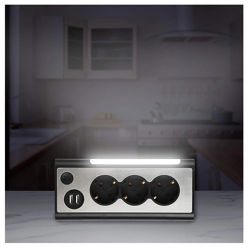 REV Light Socket Power Strip with USB and LED Light - Type F