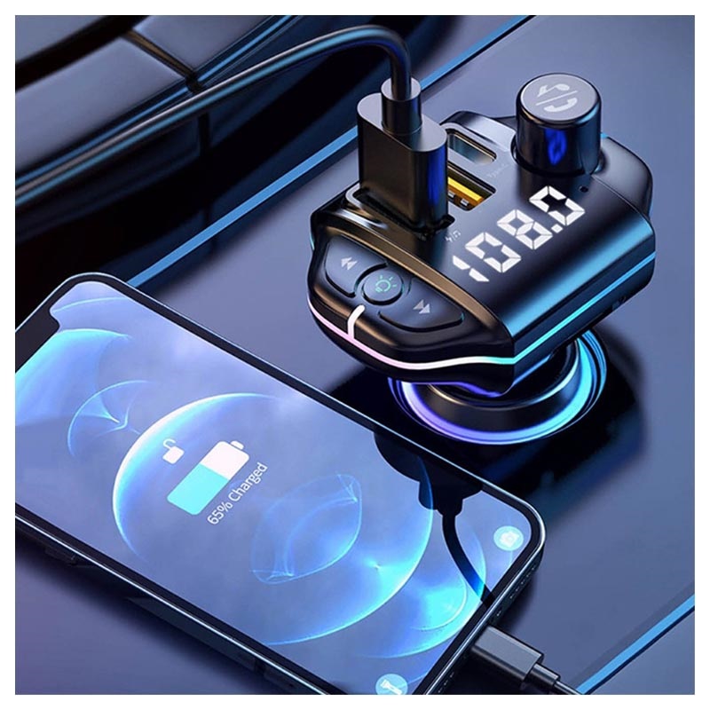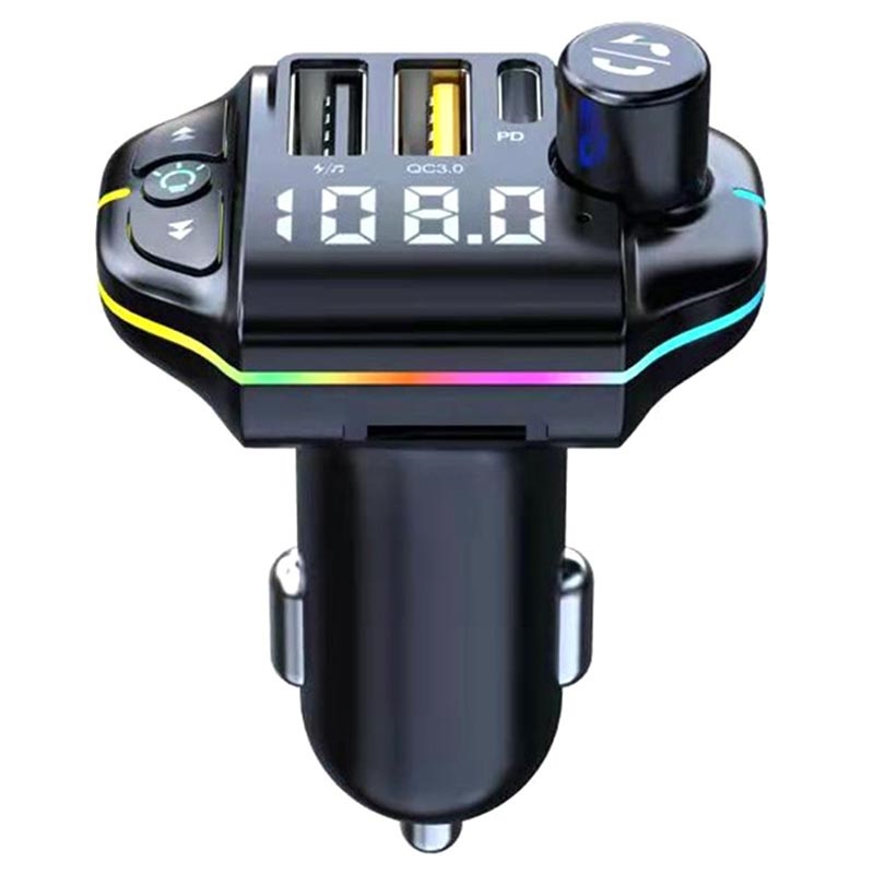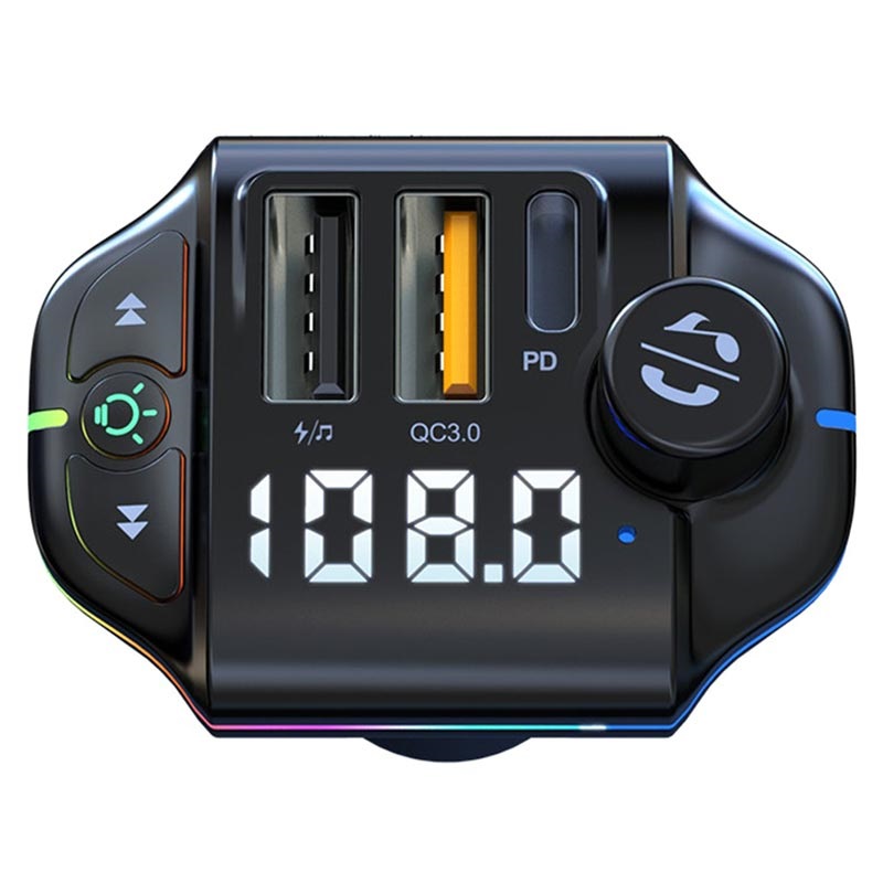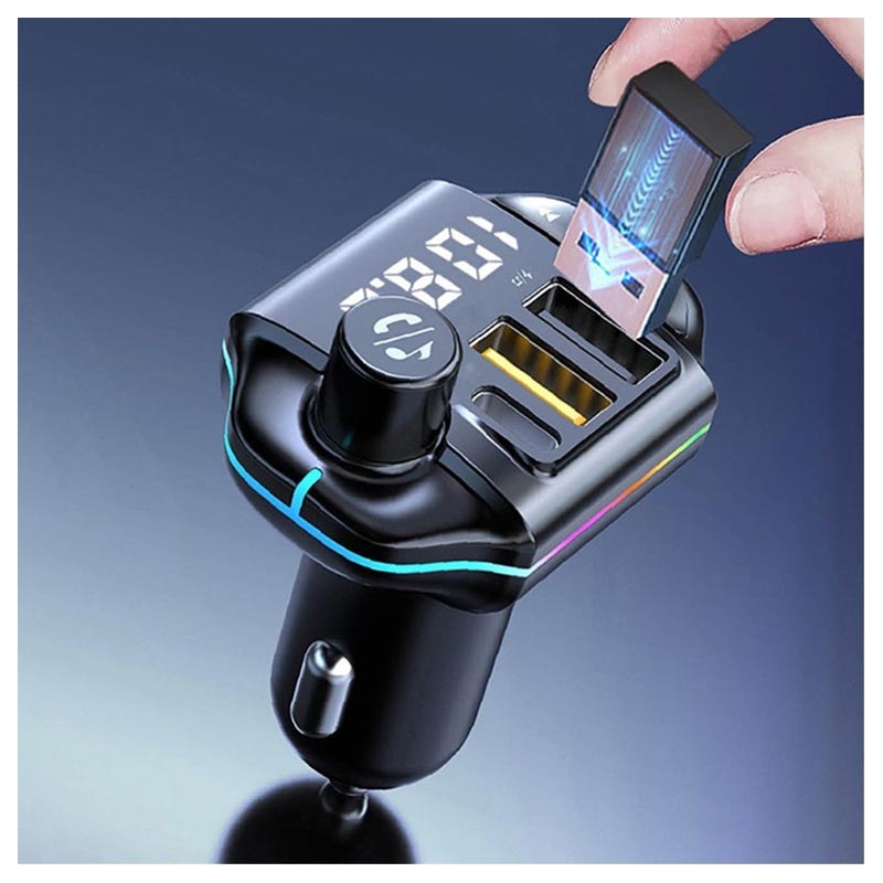 RGB Bluetooth FM Predajnik / Brzi Auto Punjač ZTB-A10 - Bluetooth 5.0, USB-C PD, 2x USB-A, QC3.0, 20W