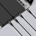 - Three-in-One Design: Equipped with USB-C, Micro USB, and Lightning connectors, this cable provides universal compatibility, allowing you to charge a variety of devices with a single cable.