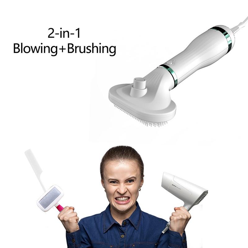 - 2-in-1 grooming tool: hair dryer + slicker brush for drying and deshedding together