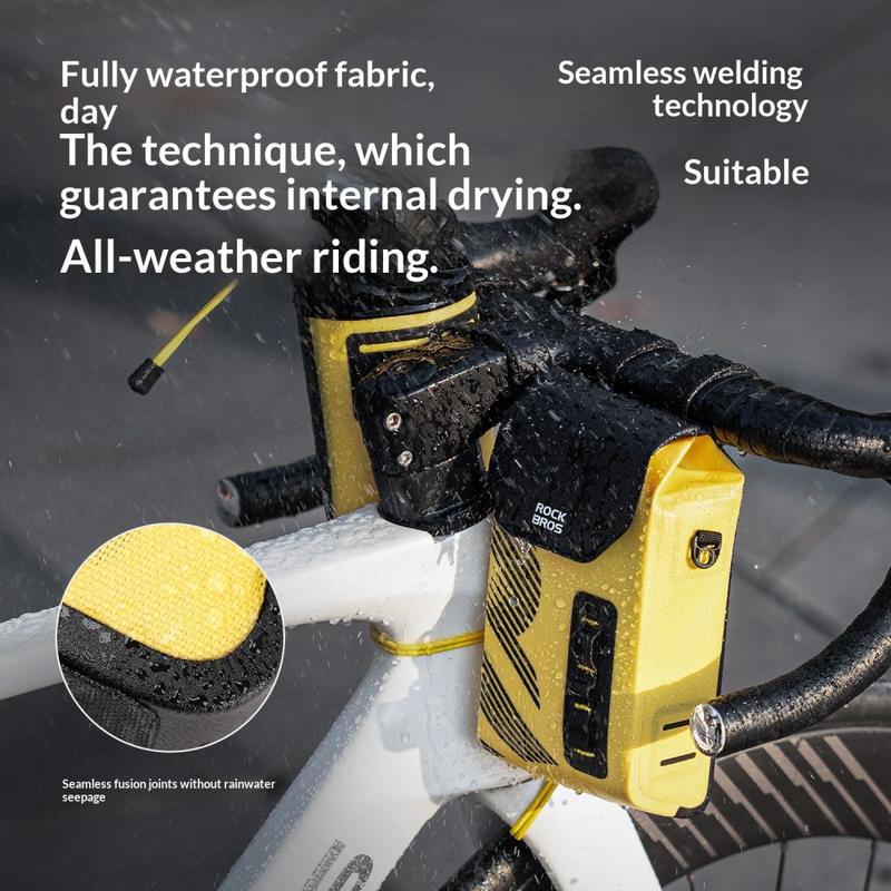 Carry essentials safely in any weather with the ROCKBROS AS-160 handlebar bag. Built for road bikes, mountain bikes, and folding bikes, it combines waterproof fabric with seamless welding to help keep your items dry on rainy rides. The magnetic flip cover enables quick one-handed access while riding, and the structured interior with PP board support keeps the bag stable and well-shaped even when packed. A detachable shoulder strap lets you switch from bike bag to casual shoulder bag in seconds.
