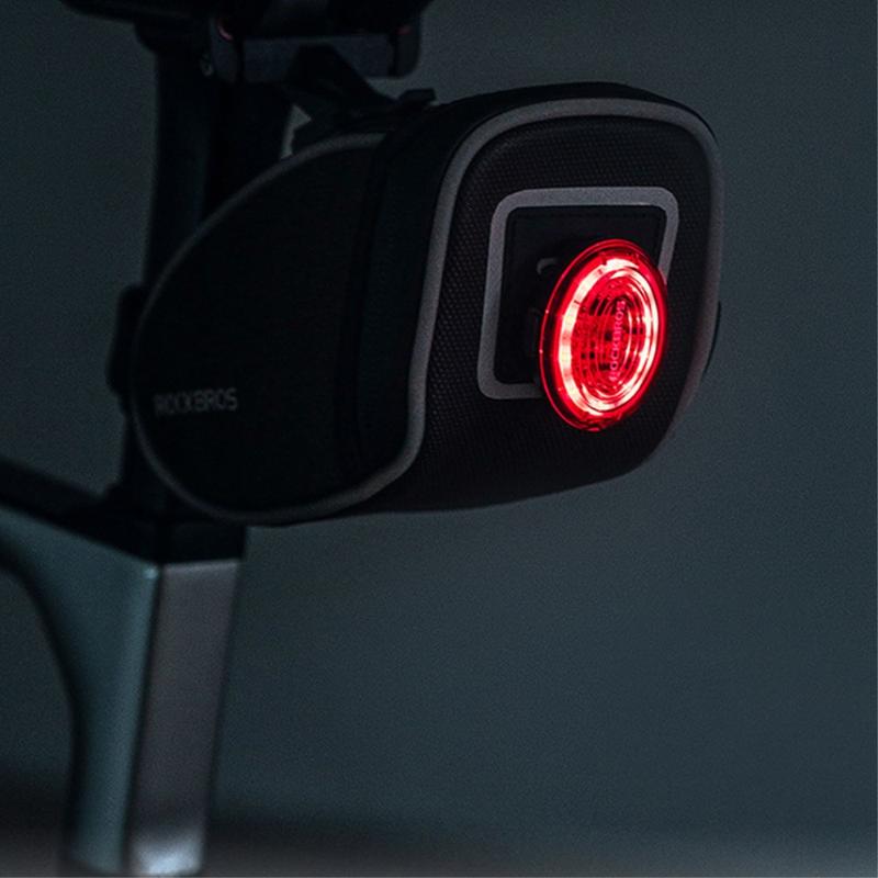 A taillight (not included) can be hung on the rear, with reflective strip, providing a prominent warning during nighttime cycling