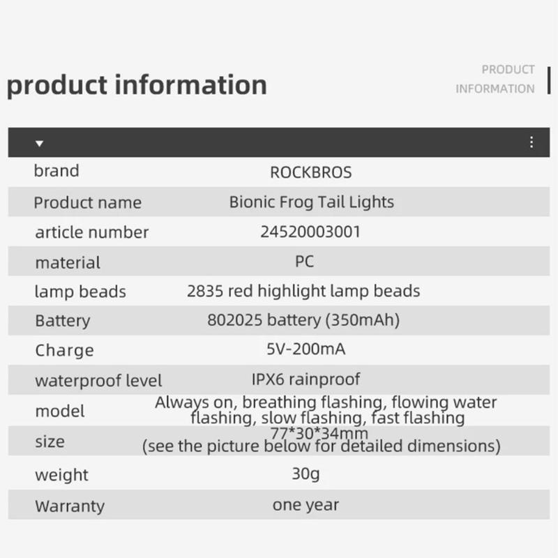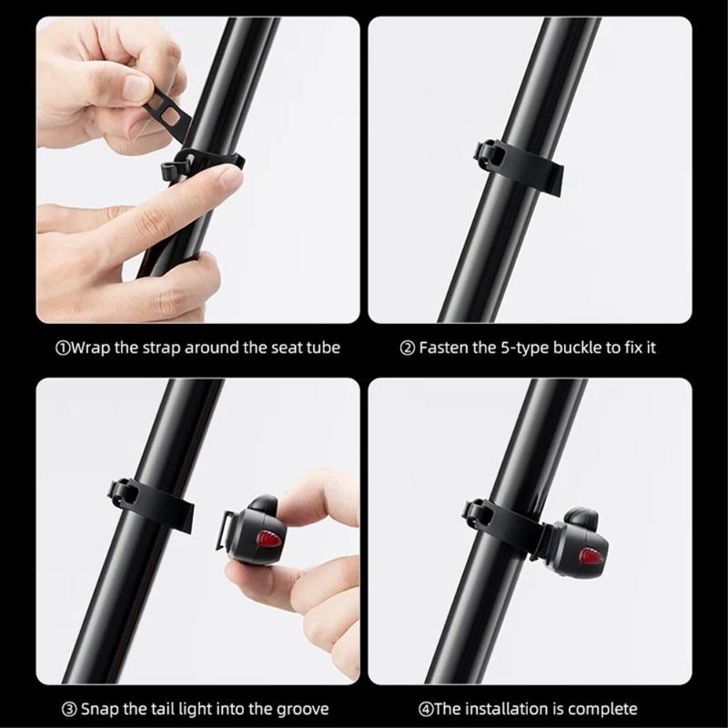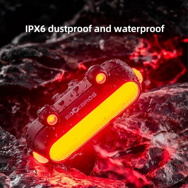 The bike taillight is equipped with a motion sensor and light sensor, which activate a highlight mode for 2s when the bike brakes, effectively warning riders behind