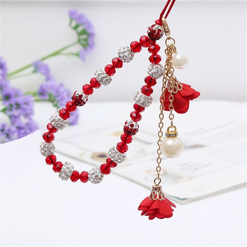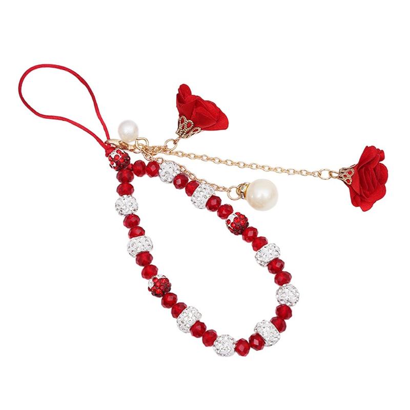 Add an elegant detail to your phone with this 18.7cm crystal bead phone lanyard. Designed as both a decorative accessory and a practical wrist strap, it combines crystal-style beads, rhinestone-look metal accents, rose flower charms, and a faux pearl pendant for a refined everyday look.