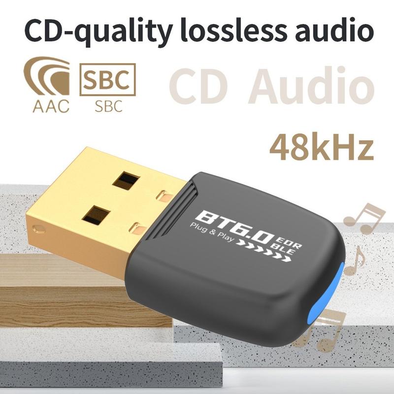 RTL60C Bluetooth 6.0 Mini USB Adapter - Dual-Mode Low-Latency Wireless Audio Receiver/Transmitter for Windows
