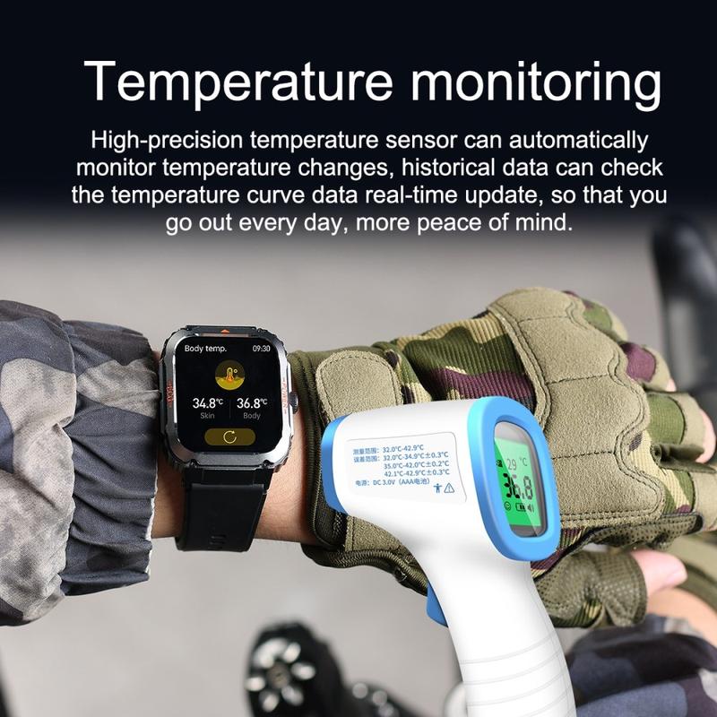Rugged Sports Smartwatch for Men ET550 - Heart Rate, Blood Sugar, Body Temperature Monitoring