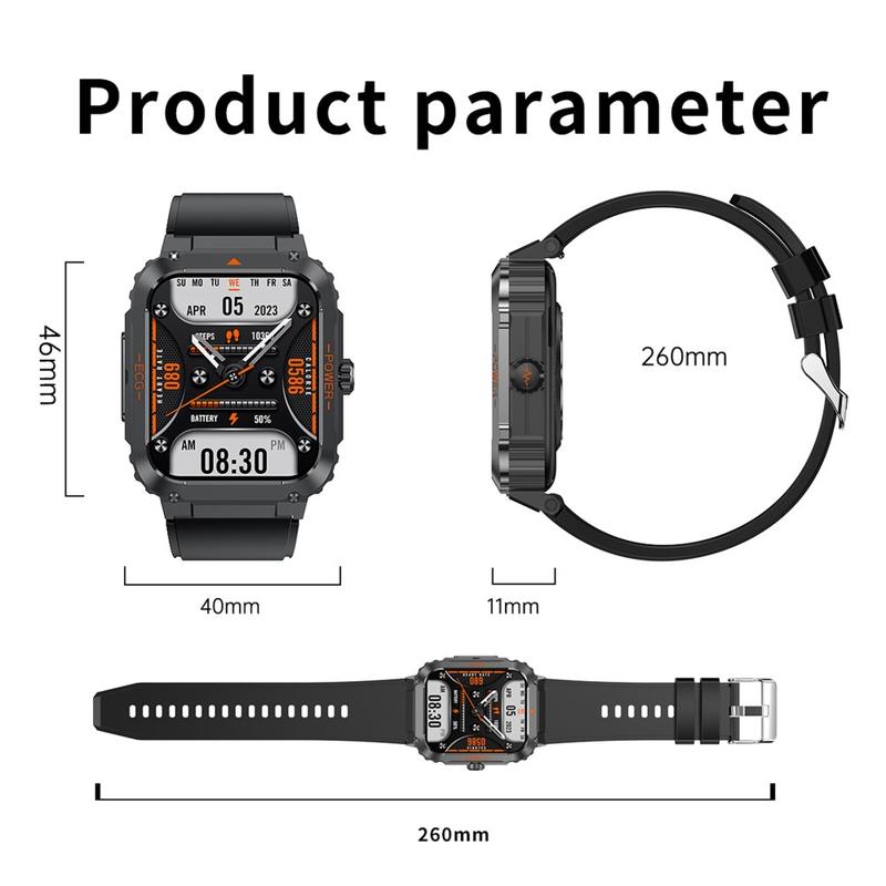 - Special Features: ECG electrocardiogram function, Bluetooth communication, non-invasive blood glucose measurement, HRV function, AI medical diagnosis, Mett function,SOS emergency call function, temperature monitoring, blood oxygen monitoring, respiratory training, pressure monitoring,NFC function, female health (menstrual tracking), heart rate monitoring, blood pressure monitoring, sleep monitoring, sedentary reminder and other health functions