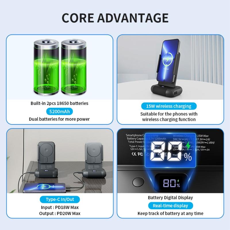 - 15W Wireless Charging: Supports 15W wireless charging to keep your phone powered while shooting. Compatible with all smartphones that support wireless charging.