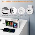 - Functions: Time, alarm, snooze, date, RGB night light, USB charging port