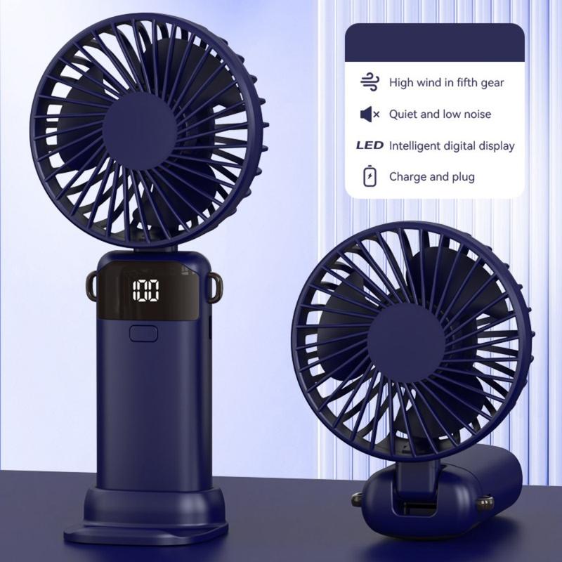 S1 Foldable Handheld Mini Fan with LED Display - 5-Speed Rechargeable Desktop Fan with Type-C Charging