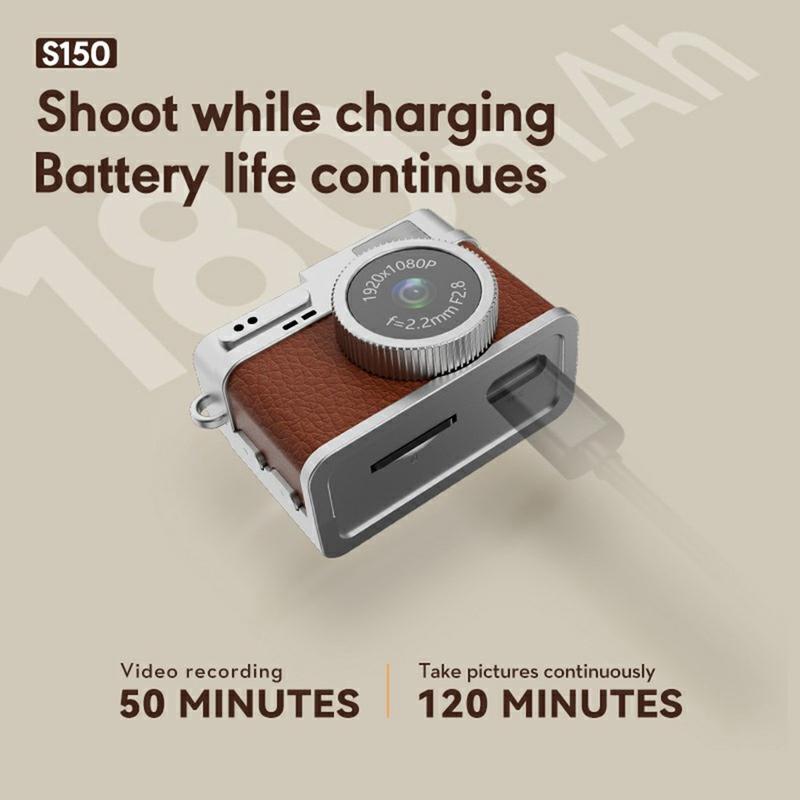 S150 Retro Mini Camera - 1080p Pendant Camera with 0.96-inch IPS Screen, Loop Recording