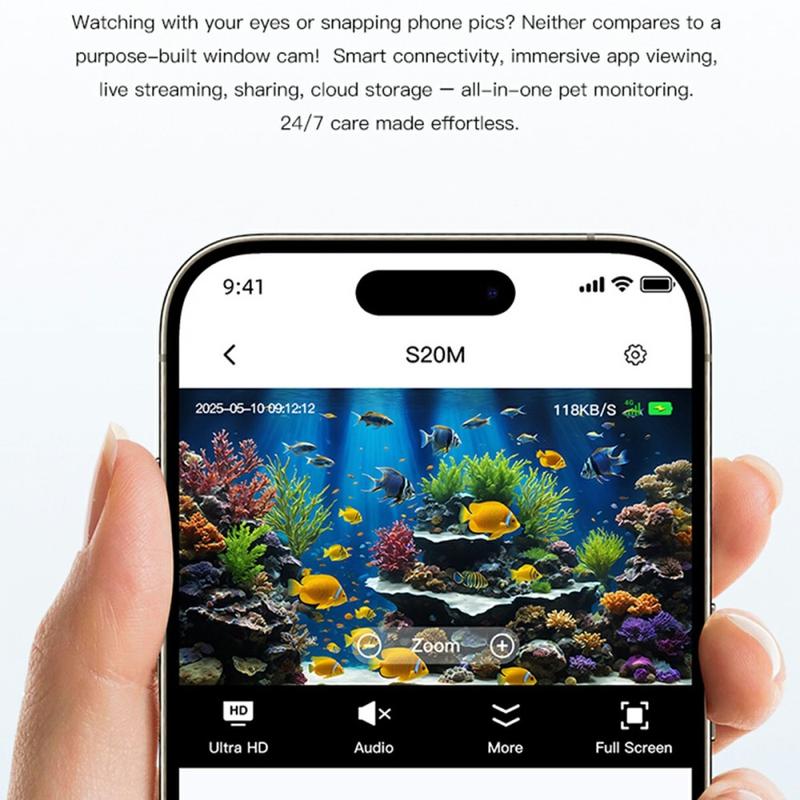 The S20M is ideal for users who need quiet, discreet monitoring with clear visuals and real-time interaction. Its no-glow night vision makes it especially suitable for aquariums, while two-way audio and motion detection add everyday security functionality. Compact, easy to install, and versatile, it fits seamlessly into home monitoring setups.