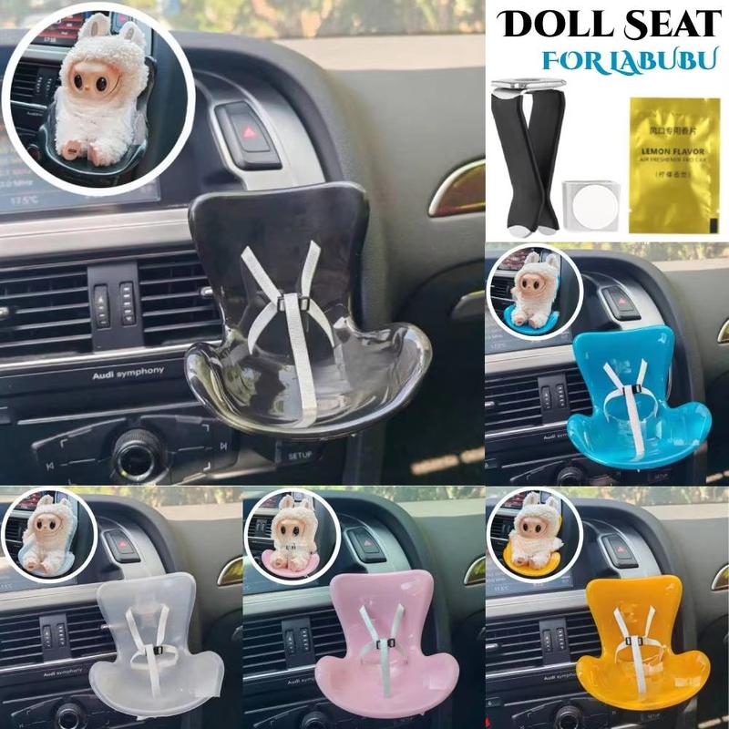 • Labubu Mini Safety Car Seat - Clip-On Car Air-Vent Mount for 17cm Plush Figures, Built-In Seat Belt, Interior Décor