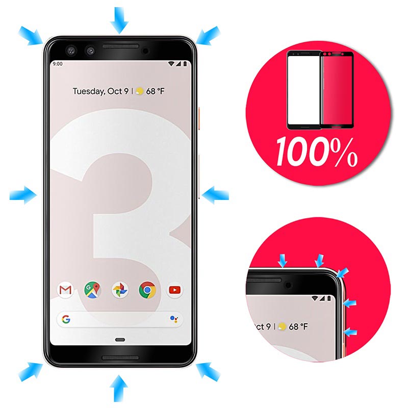 - Zaštitno kaljeno staklo za ekran za Google Pixel 3, kompatibilno sa zaštitnim maskama i futrolama.