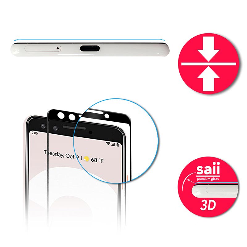 Saii Premium 3D Zaštitno Kaljeno Staklo za Ekran za Google Pixel 3 - 9H, 0.33mm - 2 Kom.