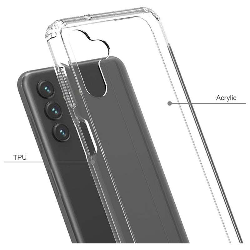 Ovaj dodatak predstavlja kombinaciju akrila i TPU materijala koji će sačuvati Vaš telefon u besprekornom stanju. Uz to, ojačane ivice apsorbuju udarce i eliminišu štetu prilikom padova, dok providni dizajn pokazuje lepote Vašeg Samsung Galaxy A04s, Galaxy A13 5G telefona u punom sjaju.