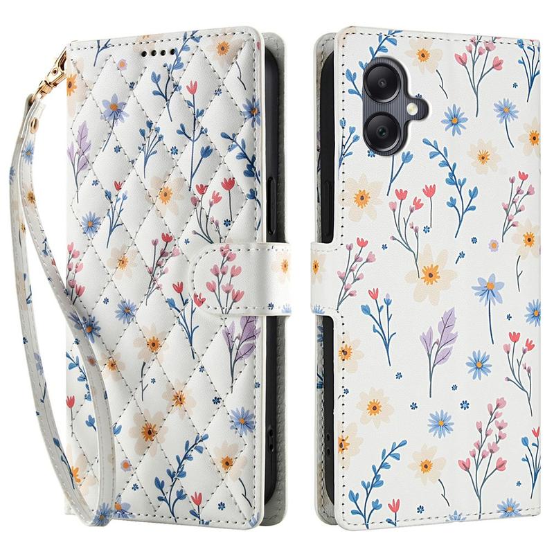 Rhombic Floral Wallet Case for Samsung Galaxy A07 4G - with Strap and Card Slots