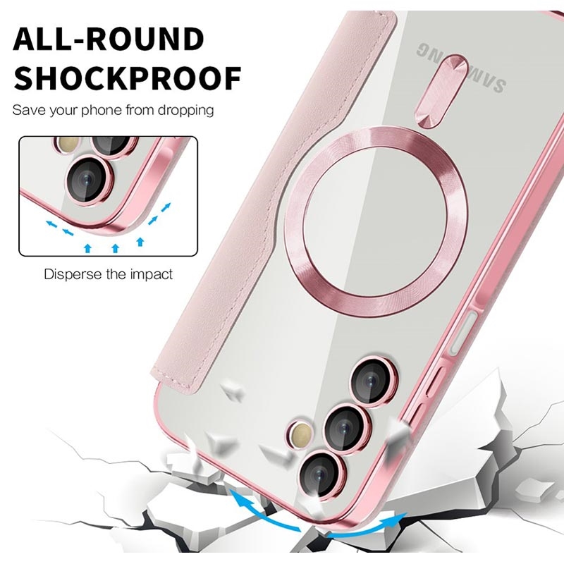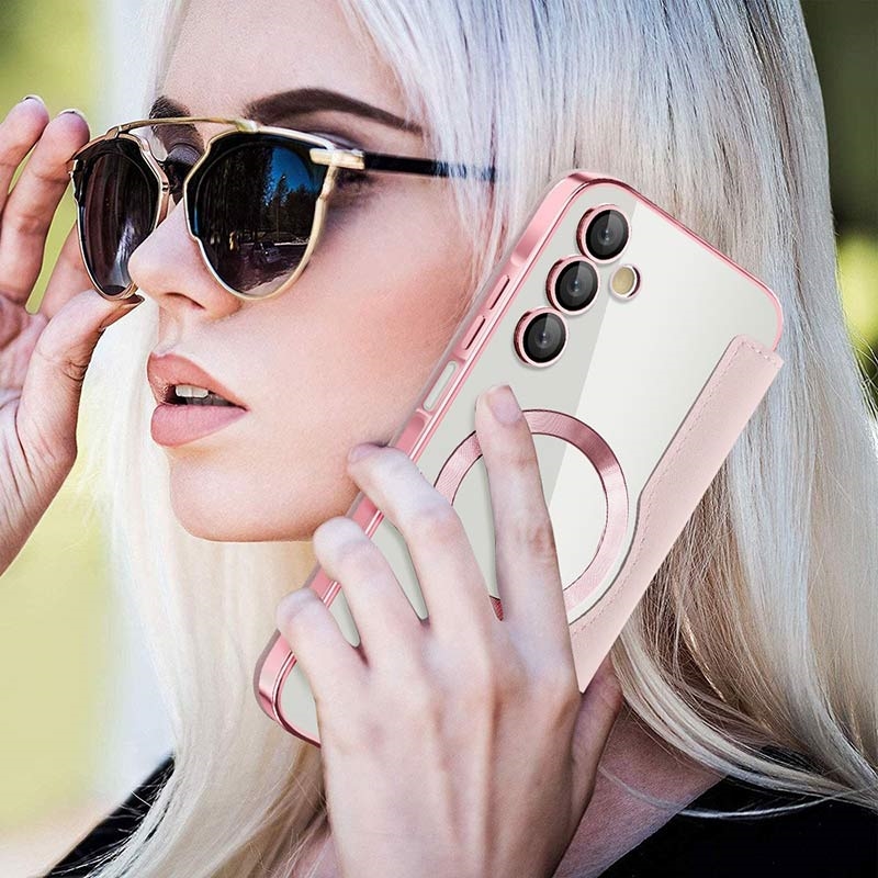 This premium Samsung Galaxy A15 case is crafted with high-quality TPU, Acrylic, and polyurethane, using a fine process to ensure a delicate and exquisite finish. It is equipped with a convenient card slot for easy swiping and spending on the go, and features a strong magnet for automatic closing, making it safe and convenient to manage items inside. This Samsung Galaxy A15 case provides effective protection against daily wear and tear, scratches, marks, and scrapes, while the advanced RFID blocking technology in the card slot ensures your personal information is protected from theft. Additionally, the built-in magnetic ring is compatible with MagSafe wireless charging, meaning you can charge your Samsung Galaxy A15 without taking off the case.