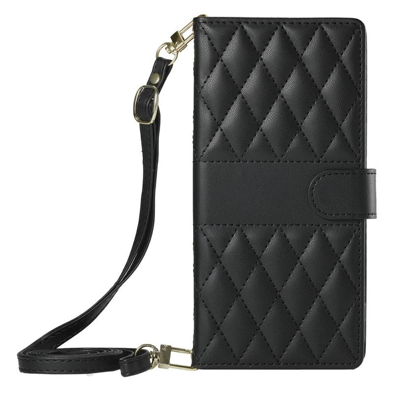 Luxury Quilted Wallet Case with Shoulder & Wrist Strap for Samsung Galaxy A37 - Rhombus Pattern Protective Cover