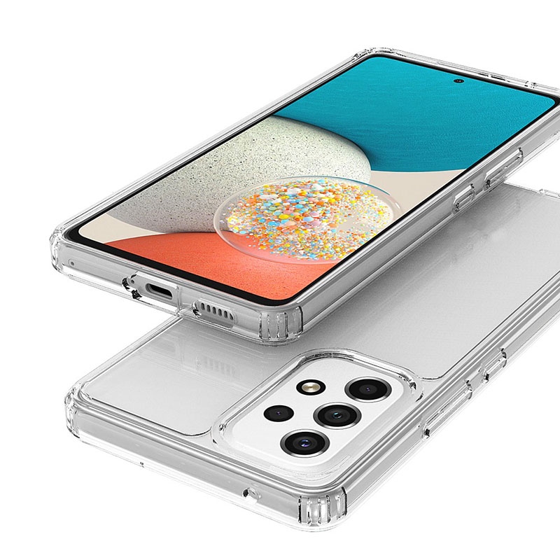 Ovaj dodatak predstavlja kombinaciju akrila i TPU materijala koji će sačuvati Vaš telefon u besprekornom stanju. Uz to, ojačane ivice apsorbuju udarce i eliminišu štetu prilikom padova, dok providni dizajn pokazuje lepote Vašeg Samsung Galaxy A53 5G telefona u punom sjaju.