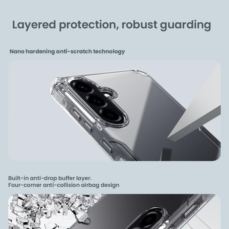 Nillkin Nature TPU Pro hibridna maska garantuje zaštitu za Vaš Samsung Galaxy A56 od ogrebotina i drugih pretnji, pri čemu se ne kliza, što znači da će Vaš telefon biti bezbedan u Vašim rukama. Uz to, providni dizajn ove Nillkin Nature TPU Pro maske će dozvoliti lepoti Vašeg Samsung Galaxy A56 telefona a da zablista u punom sjaju.