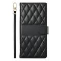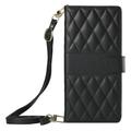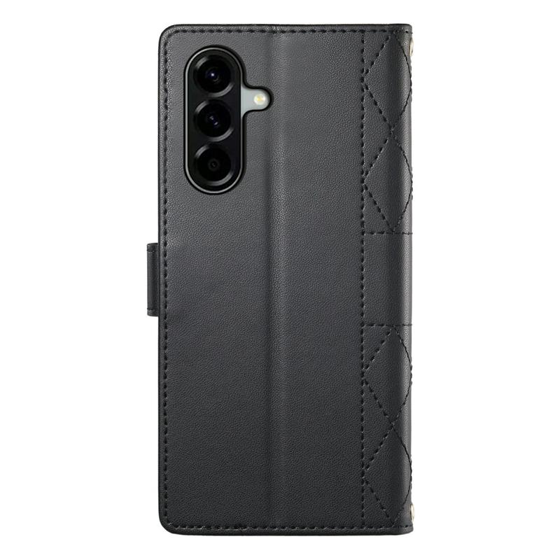 Luxury Quilted Wallet Case with Shoulder & Wrist Strap for Samsung Galaxy A57 - Rhombus Pattern Protective Cover