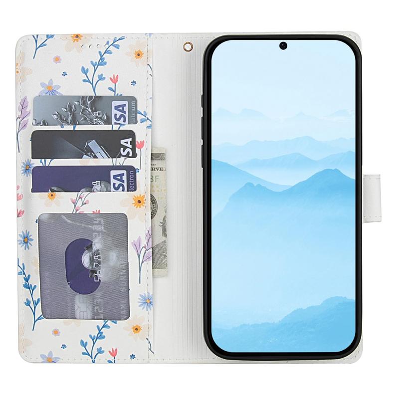 Rhombic Floral Wallet Case for Samsung Galaxy A57 - with Strap and Card Slots