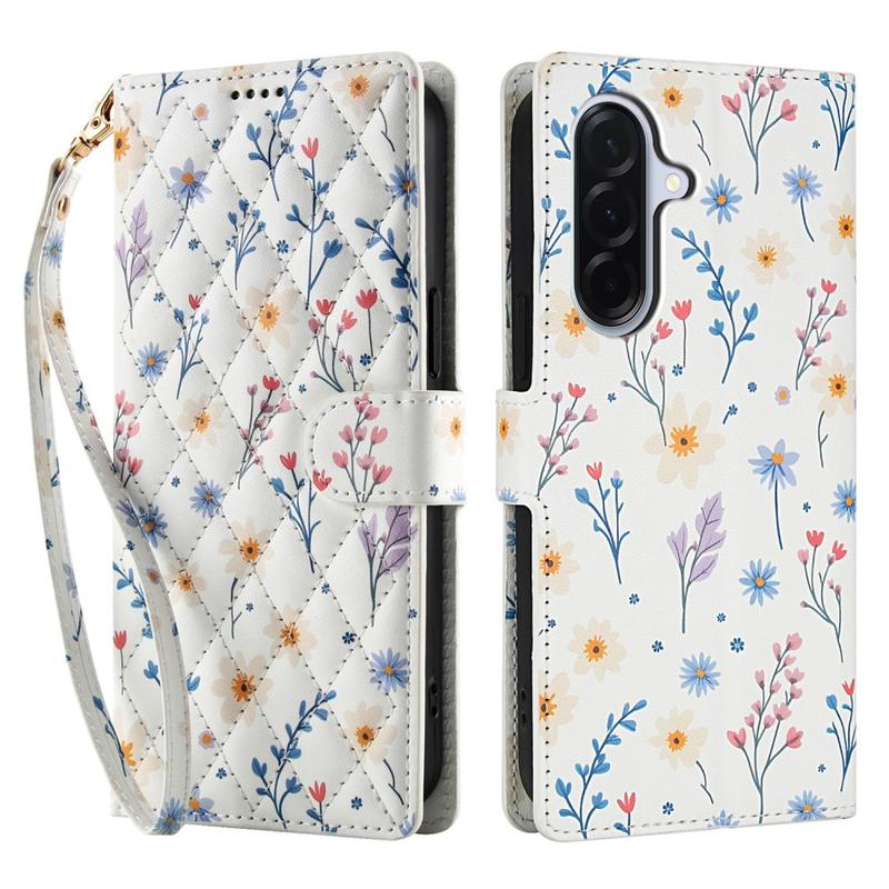 Refresh your Samsung Galaxy A57 with a slim flip wallet that blends secure protection and everyday practicality. The rhombic stitched front and tiny floral pattern add elegant style, while a soft TPU shell cushions drops and a polyurethane wrap guards against scratches. Multiple card slots, a cash pocket and an included wrist strap make this case the one-stop carry solution for commute, travel or night out.
