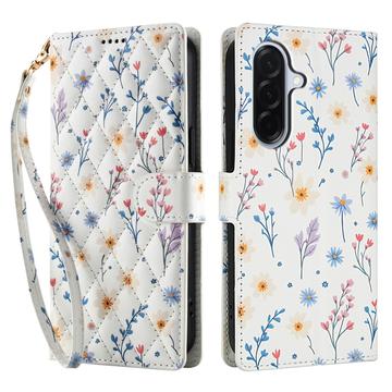 Rhombic Floral Wallet Case for Samsung Galaxy A57 - with Strap and Card Slots