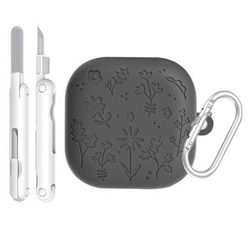 Floral Engraved Silicone Case with Cleaning Pens and Carabiner for Samsung Galaxy Buds4, Galaxy Buds4 Pro