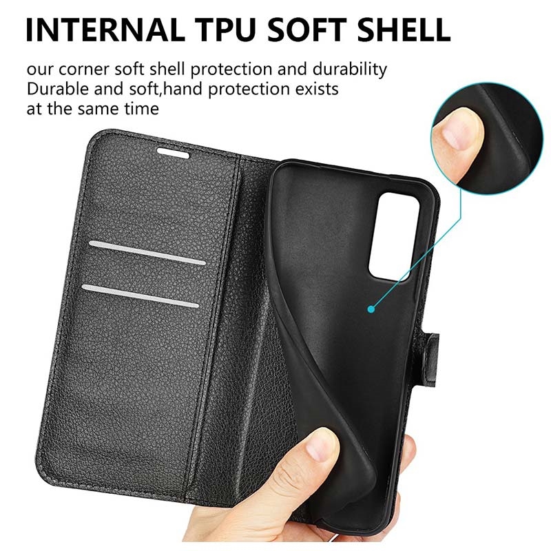 Ova premijum futrola-novčanik za Samsung Galaxy S20 5G ima sklopivu zadnju stranu koja je pretvara u praktično postolje. Uz to što nudi praktične pregrade za kartice, ova futrola je izrađena od poliuretana top kvaliteta sa TPU ležištem otpornim na udarce.