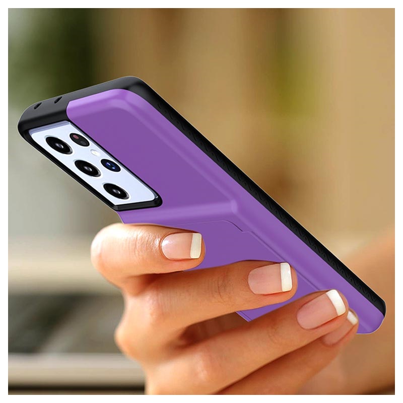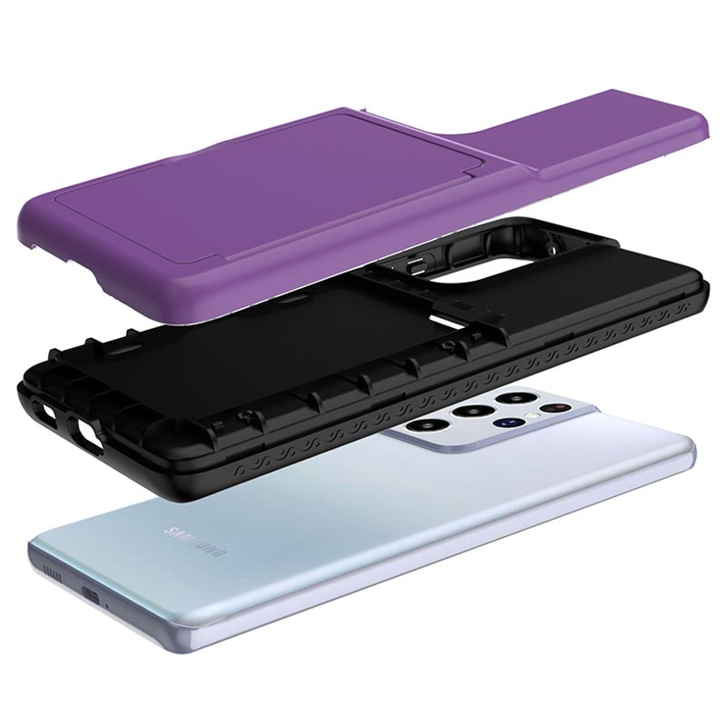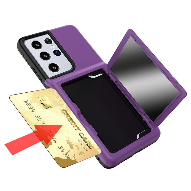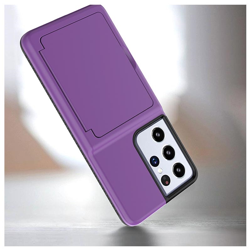 Hibridna Zaštitna Maska sa Skrivenim Ogledalom i Pregradom za Kartice za Samsung Galaxy S21 Ultra 5G