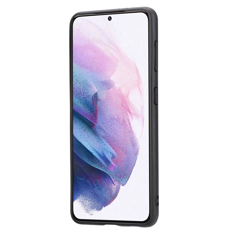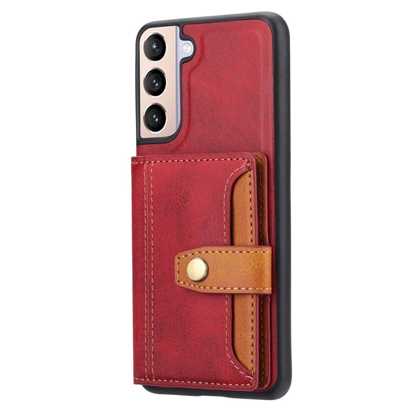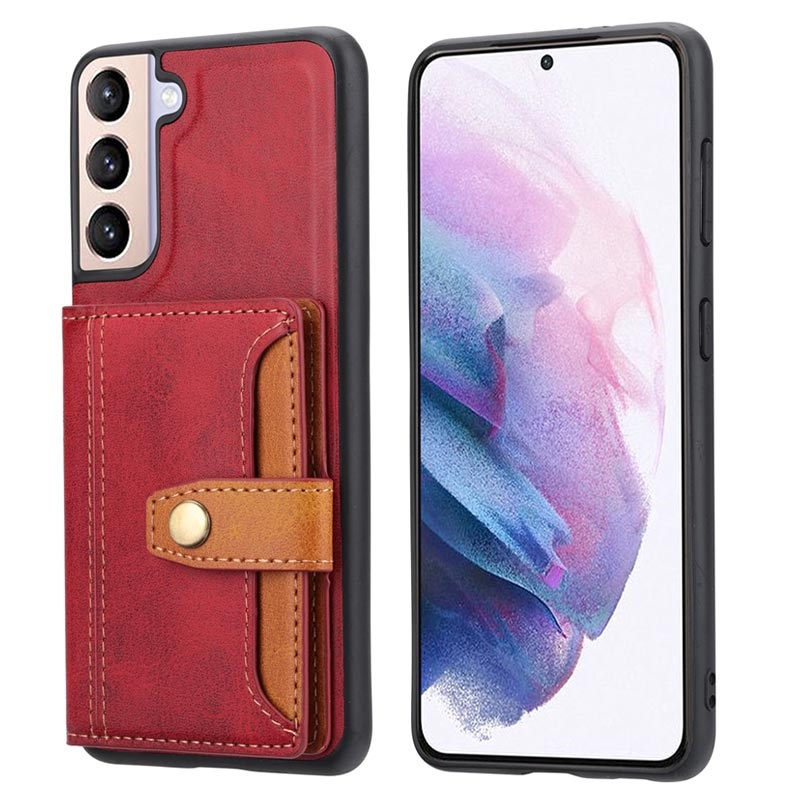 Protect your gorgeous Samsung Galaxy S22 5G with this Retro Style case. The case comes with an integrated wallet on the backside, with a couple of card slots and an ID slot. The wallet can serve as a kickstand for hands-free media viewing. A metal strap-on enclosure secures the cards inside the wallet.