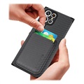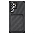 Samsung Galaxy S22 Ultra 5G Maska sa Držačem Kartica - Ugljenično Vlakno - Crna