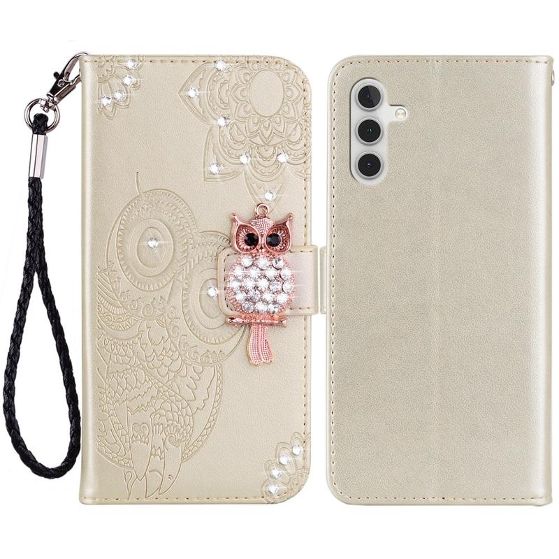 Samsung Galaxy S24+ Owl Rhinestone Wallet Case - Gold