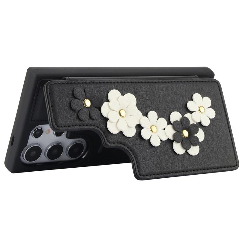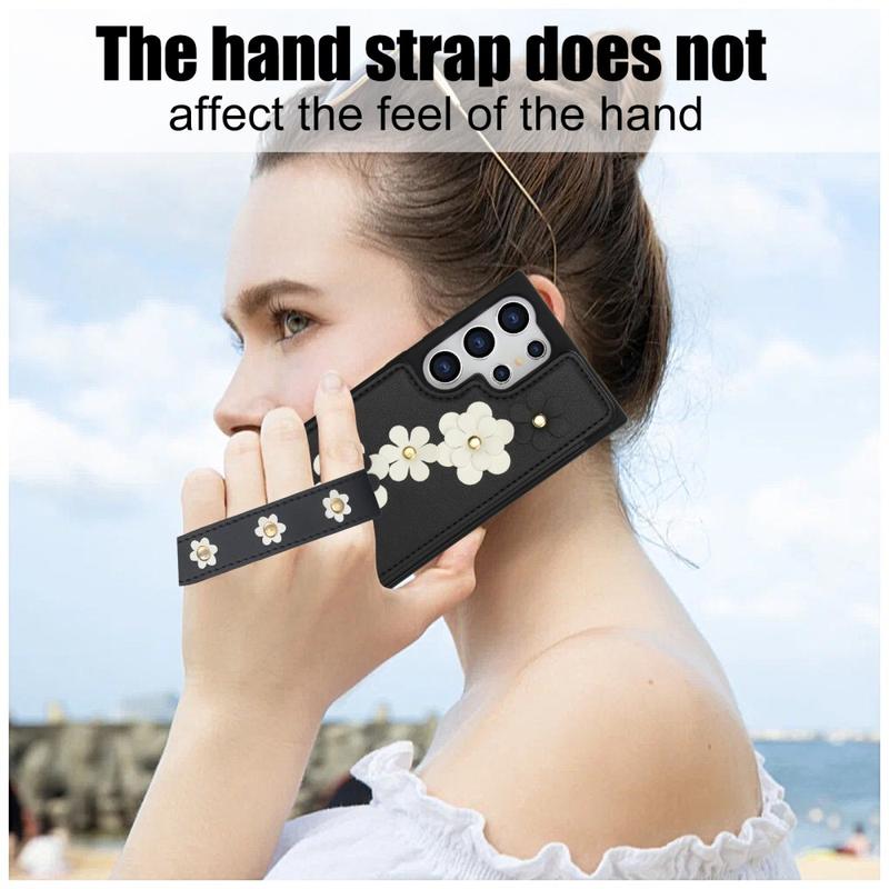 Flower Decor Case with Strap and Card Slots for Samsung Galaxy S24 Ultra