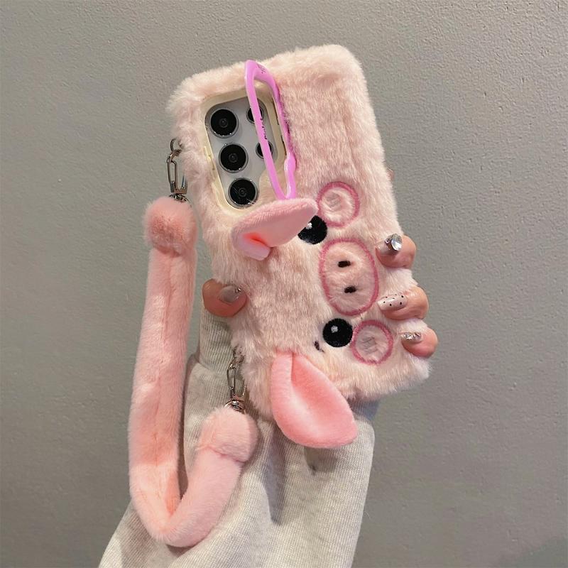 Plush Piglet Case with Kickstand & Hand Strap for Samsung Galaxy S24 Ultra