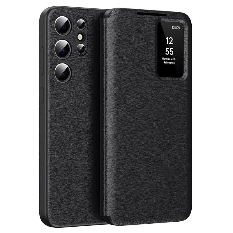 Samsung Galaxy S24 Ultra Smart Clear View Flip Case with Card Slot - Black