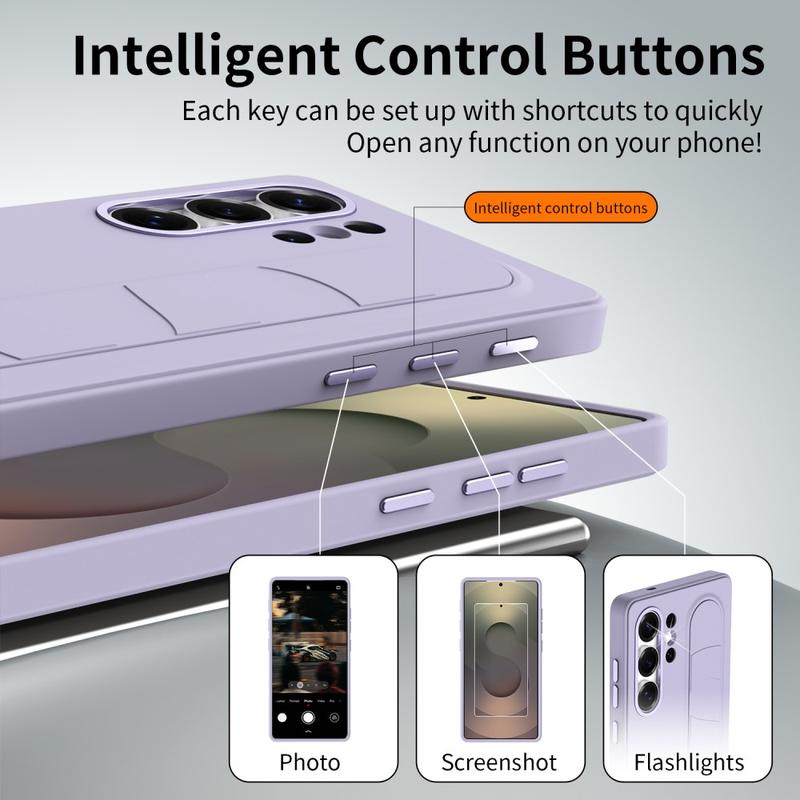 Smart Hybrid Case with Standing Grip for Samsung Galaxy S24 Ultra - NFC Customizable Shortcut Keys, Wristband Kickstand & Alloy Camera Protection