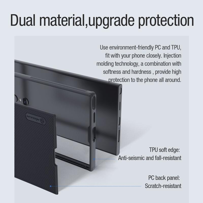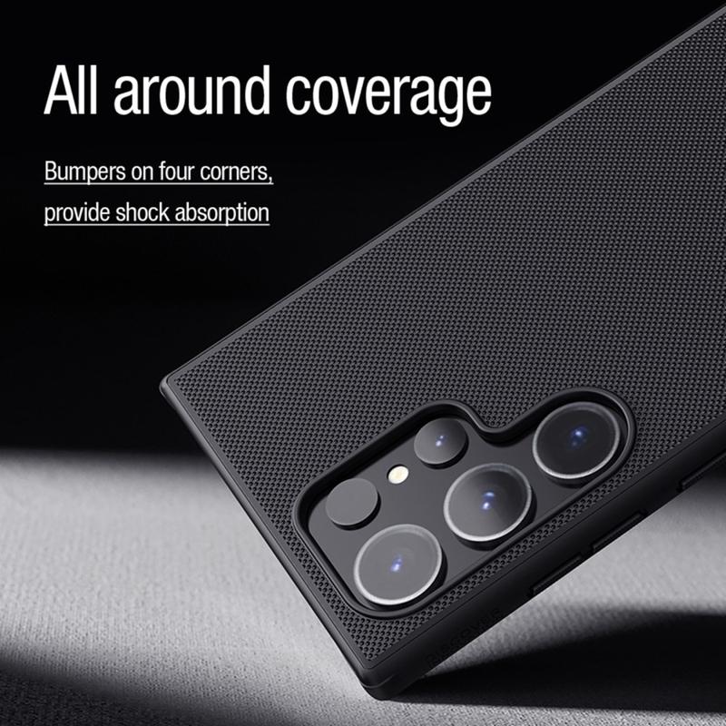 Hibridna Maska Nillkin Frosted Shield Pro Magnetic pruža ugodan osećaj dodira i snažnu zaštitu od svakodnevnog habanja i habanja. Održava Vaš Samsung Galaxy S24 Ultra dobro zaštićenim zahvaljujući kombinaciji plastike koja je prihvatljiva za životnu sredinu i fleksibilnog TPU-a. Nillkin Frosted Shield Pro Magnetic hibridna maska takođe sadrži ugrađeni magnetni prsten kompatibilan sa bežičnim punjenjem, što znači da od sada možete puniti svoj Samsung Galaxy S24 Ultra sa futrolom.