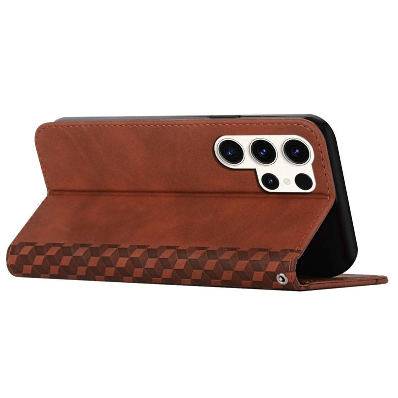 Protect your Samsung Galaxy S25 Ultra in style with this premium polyurethane Rhombus Pattern case, designed for durability and convenience. Featuring a sleek finish, this case is equipped with a magnetic closure to keep your phone secure while offering quick access. The built-in stand function allows you to enjoy hands-free viewing, making it ideal for streaming, video calls, or browsing. The elegant PU leather design not only adds sophistication but also provides reliable protection against scratches, bumps, and drops, ensuring your device stays in perfect condition.