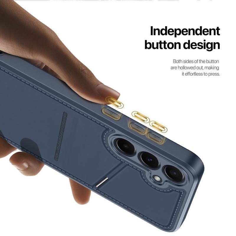 Keep your Samsung Galaxy S25+ safe and stylish with the Dux Ducis Rafi II Series Magnetic Case. This premium case combines a sleek leather finish with a durable TPU interior for comprehensive protection. Designed for functionality, it includes a built-in kickstand, magnetic closure, and card slots, making it ideal for users who need both convenience and elegance.