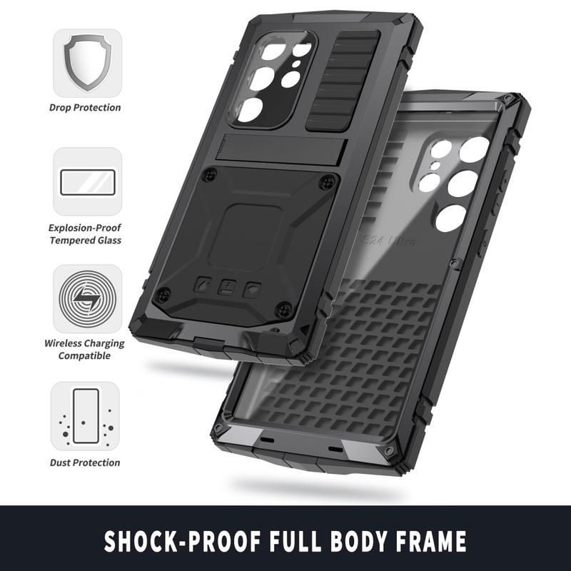 Experience unmatched protection and functionality with the R-Just Case for Samsung Galaxy S25 Ultra. Built for durability, this hybrid case combines PC, silicone, and metal materials for comprehensive defense against everyday wear and tear. With its integrated kickstand and included tempered glass film, this case offers premium practicality without compromising style. Designed for the modern user, it’s the ideal accessory to protect your device while maintaining sleek aesthetics.