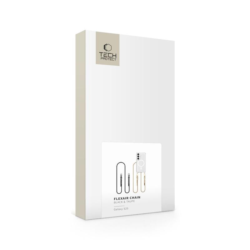 The Tech-Protect FlexAir Chain MagSafe Case brings style and function to your Samsung Galaxy S25 with its MagSafe compatibility and sleek black & taupe design. This lightweight case provides strong protection while offering a fashionable chain accessory for added convenience.