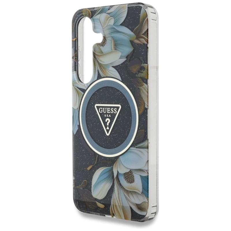 Samsung Galaxy S25 Guess Glitter Flowers Triangle Buttons MagSafe Case