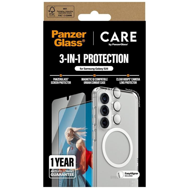 Care by PanzerGlass Flagship 3-in-1 Protection Bundle for Samsung Galaxy S25 - MagSafe Urban Combat Case, Ultra-Wide Fit Tempered Glass Screen Protector & Hoops Camera Lens Protector