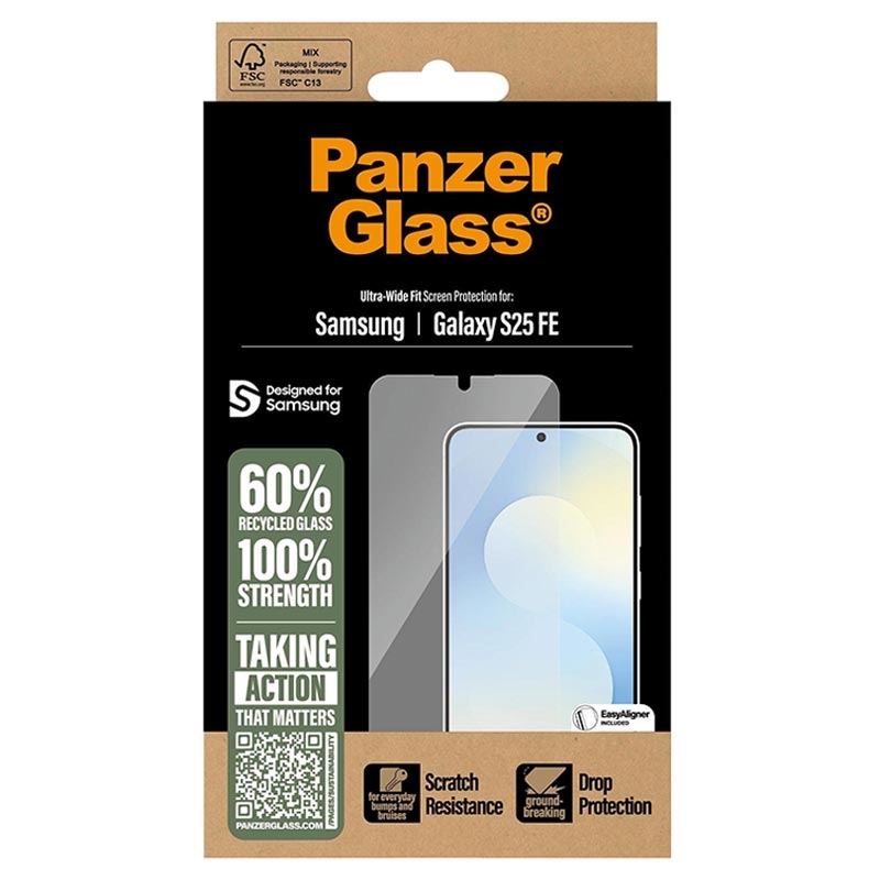 - Ultra-Wide Fit zaštitnik ekrana od kaljenog stakla za Samsung Galaxy S25 FE kompanije PanzerGlass