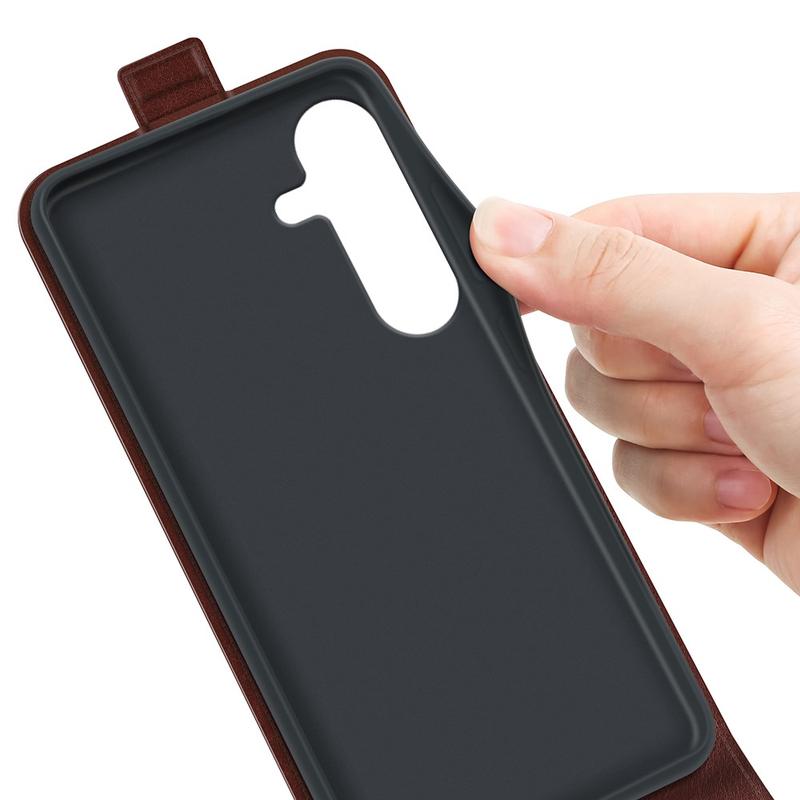 - Ova kvalitetna vertikalna preklopna futrola za Samsung Galaxy S25+ je napravljena od poliuretana i TPU-a
