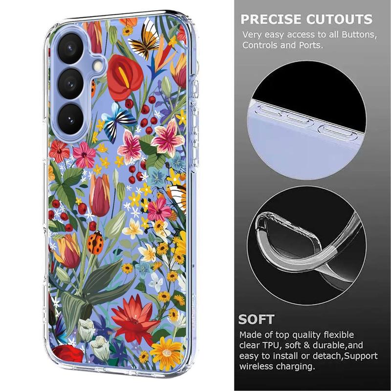 Transform your Samsung Galaxy S26 Pro into a handheld piece of art. The Floral edition surrounds your phone with a dreamy wash of lavender blooms and delicate butterflies printed in high-definition inks that resist fading. Crafted from flexible, shock-absorbing TPU, the case hugs every curve of your device while raised lips guard the screen and camera lenses from daily knocks. A matte, anti-smudge coating keeps the design crisp and your phone fingerprint-free, all without blocking Qi wireless charging.