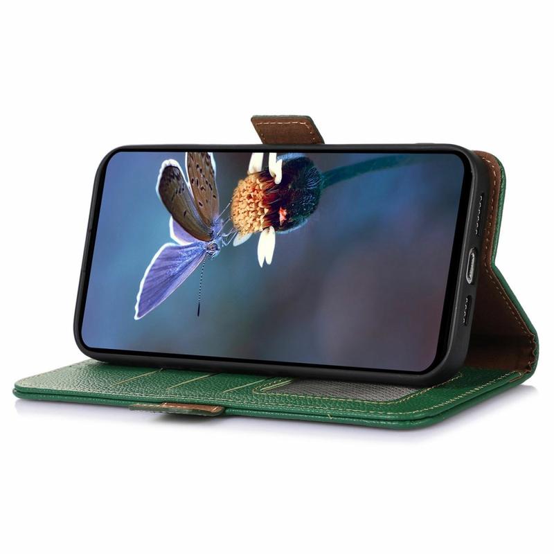 - Premium Genuine Leather – Made from high-quality cowhide leather with a refined texture, complemented by a durable TPU inner shell that securely holds your phone and absorbs impact.